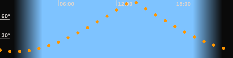 | Höchster Stand (Kulmination) | 13:35 Uhr (h = 88,8°) |
