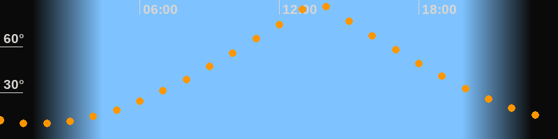| Höchster Stand (Kulmination) | 13:36 Uhr (h = 88,8°) |