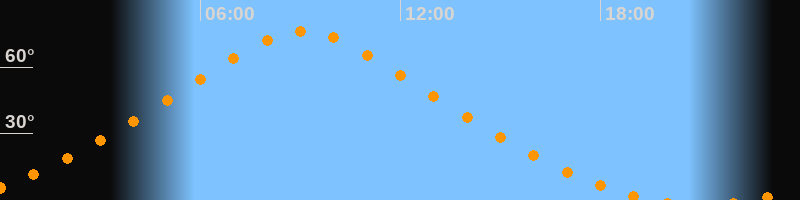 | Höchster Stand (Kulmination) | 09:05 Uhr (h = 76,3°) |