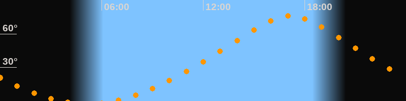 | Höchster Stand (Kulmination) | 17:09 Uhr (h = 76,3°) |
