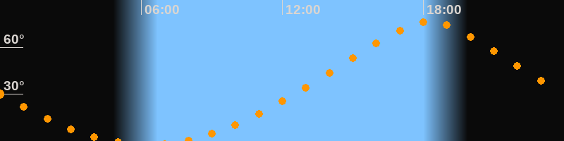 | Höchster Stand (Kulmination) | 18:14 Uhr (h = 76,3°) |