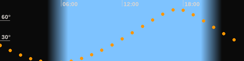 | Höchster Stand (Kulmination) | 17:25 Uhr (h = 76,3°) |