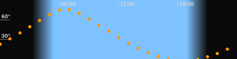 | Höchster Stand (Kulmination) | 06:37 Uhr (h = 76,3°) |
