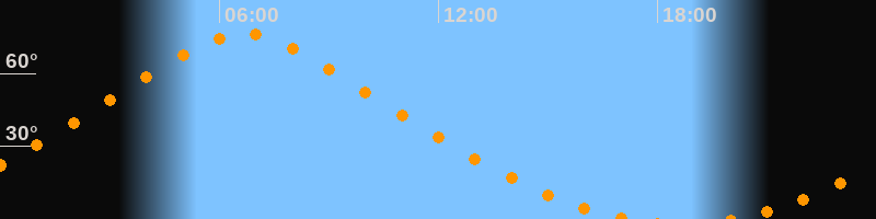 | Höchster Stand (Kulmination) | 06:40 Uhr (h = 76,3°) |