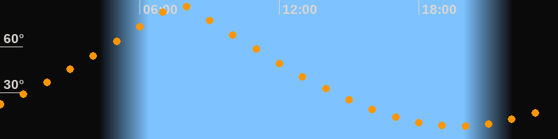 | Höchster Stand (Kulmination) | 07:43 Uhr (h = 87°) |