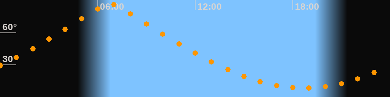 | Höchster Stand (Kulmination) | 06:44 Uhr (h = 87°) |