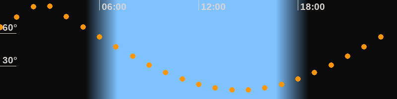| Höchster Stand (Kulmination) | 02:32 Uhr (h = 87°) |