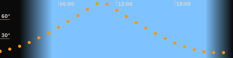 | Höchster Stand (Kulmination) | 10:25 Uhr (h = 87°) |