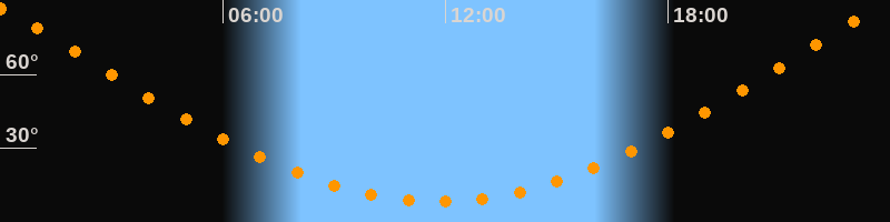| Höchster Stand (Kulmination) | 23:48 Uhr (h = 87°) |