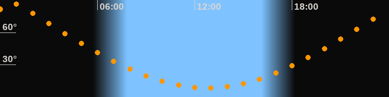 | Höchster Stand (Kulmination) | 00:44 Uhr (h = 87°) |