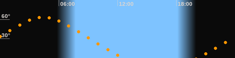 | Höchster Stand (Kulmination) | 04:24 Uhr (h = 63,4°) |