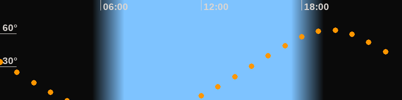 | Aufgang | 11:24 Uhr im Nordosten (αAz = 48,9°) |