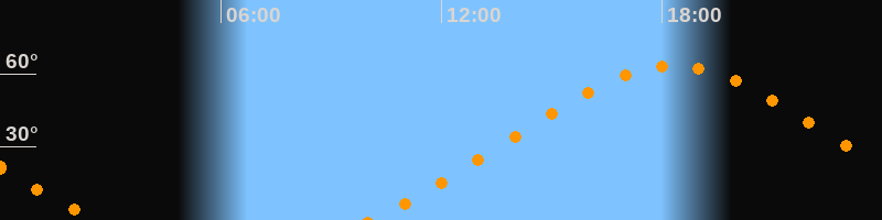 | Höchster Stand (Kulmination) | 18:19 Uhr (h = 63,4°) |