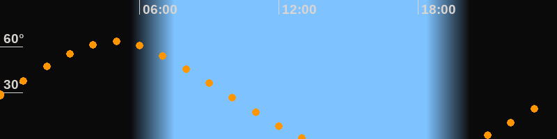 | Höchster Stand (Kulmination) | 04:55 Uhr (h = 63,4°) |