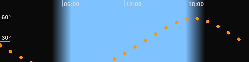 | Höchster Stand (Kulmination) | 18:36 Uhr (h = 63,4°) |