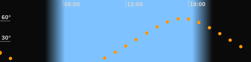 | Höchster Stand (Kulmination) | 17:25 Uhr (h = 63,4°) |