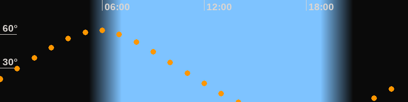 | Höchster Stand (Kulmination) | 05:48 Uhr (h = 63,4°) |