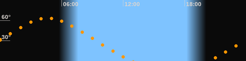| Höchster Stand (Kulmination) | 04:37 Uhr (h = 63,4°) |