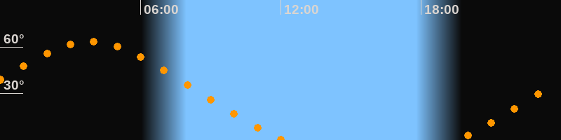 | Untergang | 12:07 Uhr im Nordwesten (αAz = 311,1°) |