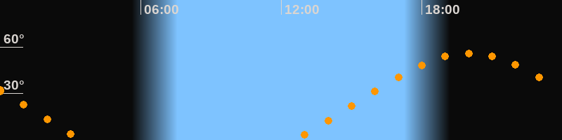 | Aufgang | 12:31 Uhr im Nordosten (αAz = 62,2°) |
