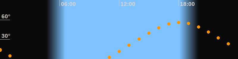 | Höchster Stand (Kulmination) | 18:06 Uhr (h = 56°) |