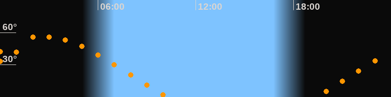 | Aufgang | 19:17 Uhr im Nordosten (αAz = 62,2°) |