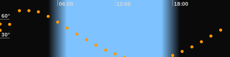 | Höchster Stand (Kulmination) | 03:12 Uhr (h = 73,5°) |