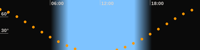| Aufgang | 13:48 Uhr im Nordosten (αAz = 25,7°) |