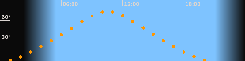 | Höchster Stand (Kulmination) | 10:30 Uhr (h = 73,5°) |