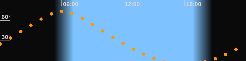 | Höchster Stand (Kulmination) | 06:03 Uhr (h = 73,5°) |