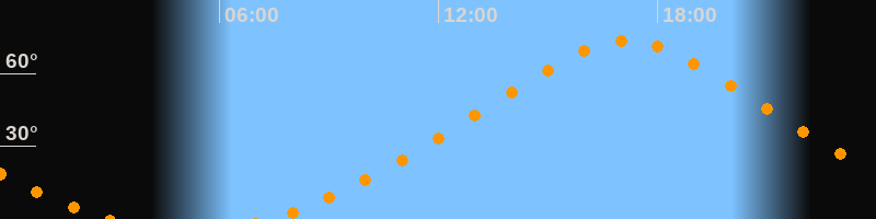 | Höchster Stand (Kulmination) | 17:08 Uhr (h = 73,5°) |
