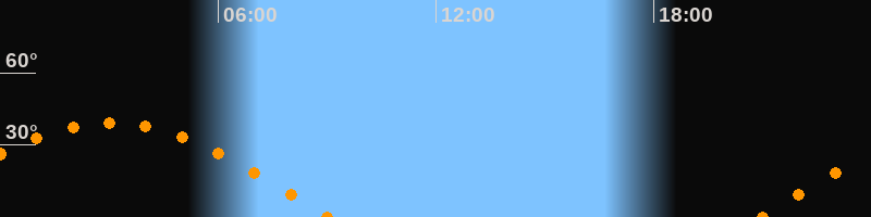 Höchster Stand (Kulmination)03:02 Uhr (h = 39,1°)