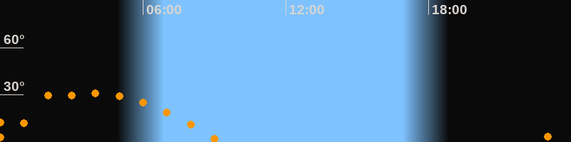 | Untergang | 09:19 Uhr im Westen (αAz = 257,6°) |