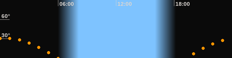 | Aufgang | 19:11 Uhr im Osten (αAz = 102,4°) |