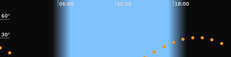 | Aufgang | 15:00 Uhr im Osten (αAz = 102,4°) |