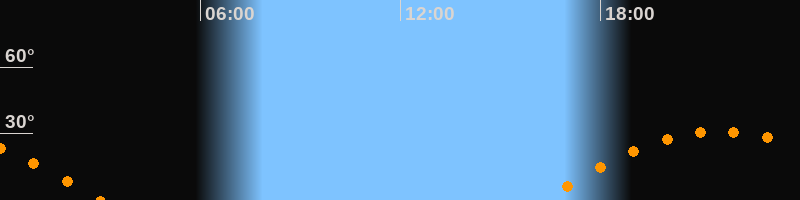 | Aufgang | 16:13 Uhr im Osten (αAz = 102,4°) |