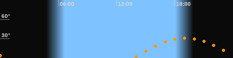 | Aufgang | 13:43 Uhr im Osten (αAz = 102,4°) |
