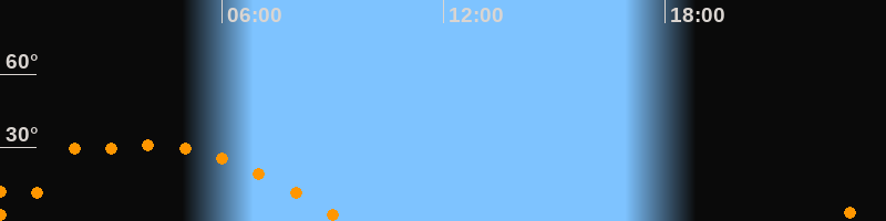 | Aufgang | 22:33 Uhr im Osten (αAz = 102,4°) |