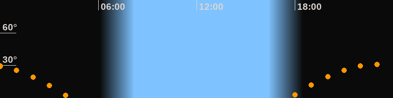 | Aufgang | 17:34 Uhr im Osten (αAz = 102,4°) |