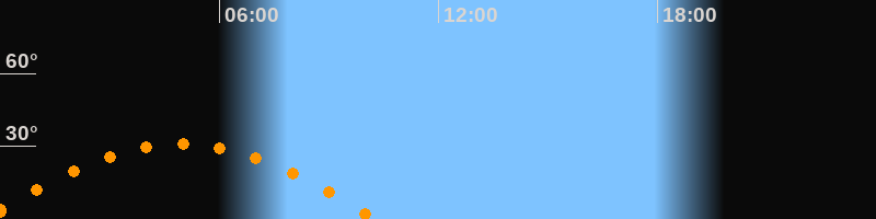 | Untergang | 10:18 Uhr im Westen (αAz = 257,6°) |