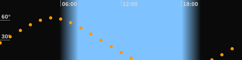 Höchster Stand (Kulmination)05:12 Uhr (h = 63,4°)