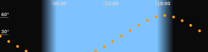 Höchster Stand (Kulmination)18:58 Uhr (h = 63,4°)