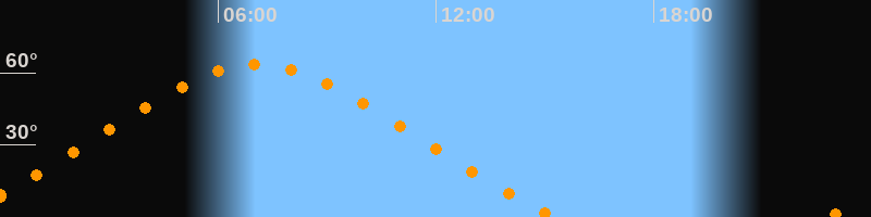 Höchster Stand (Kulmination)07:04 Uhr (h = 63,4°)