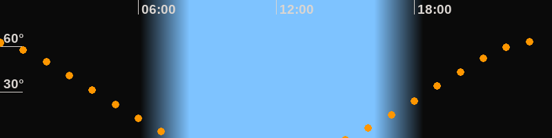 Höchster Stand (Kulmination)23:19 Uhr (h = 63,4°)