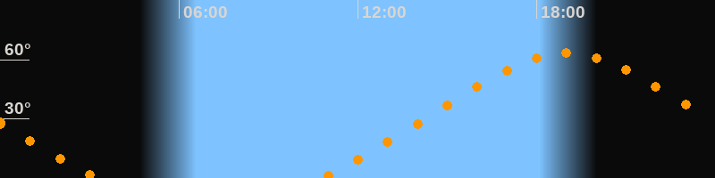 Höchster Stand (Kulmination)19:00 Uhr (h = 63,4°)