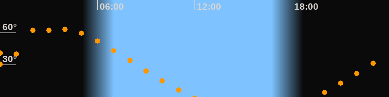 Aufgang19:20 Uhr im Nordosten (αAz = 48,9°)