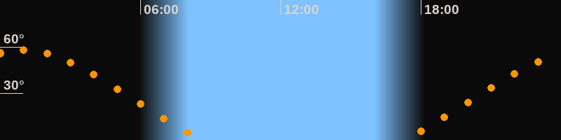 | Aufgang | 17:15 Uhr im Nordosten (αAz = 58,8°) |