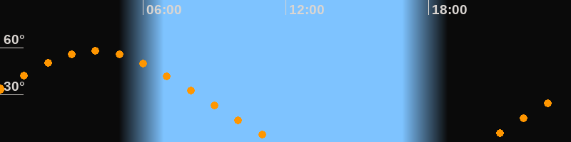 | Aufgang | 20:13 Uhr im Nordosten (αAz = 58,8°) |