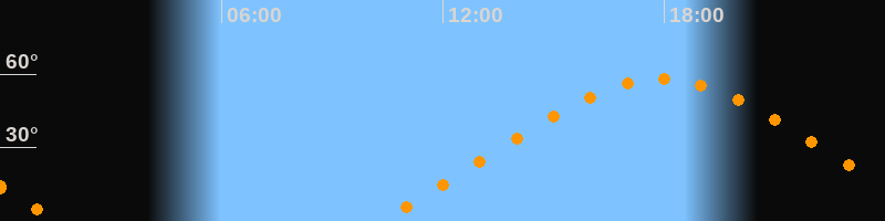 | Aufgang | 10:15 Uhr im Nordosten (αAz = 58,8°) |