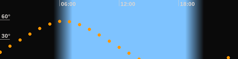 | Höchster Stand (Kulmination) | 06:25 Uhr (h = 57,9°) |